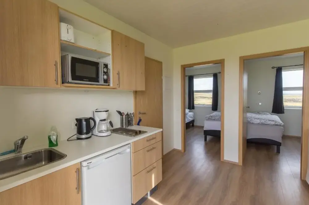 The Holiday Houses by Stay in Iceland bietet Unterkunft mit privatem Bad und kostenlosem Parkplatz. Die Ferienwohnungen verfügen über ein Flachbildfernseher sowie Kaffeemaschine. Gäste können das Freie WLAN nutzen und profitieren von einer Sicht auf die Umgebung. In der nähe befindet sich das Restaurantkloster innerhalb von 22 km, während der Vestmannaeyjar Airport etwa 96 km entfernt liegt. Die Bewertungen erwähnen eine schöne Aussicht aus den Fenstern sowie geräumige Zimmer. Einige Reisende berichten von einem Blick auf die Aurora, allerdings wird die Ausstattung der Küche als einfach beschrieben, wobei kein Backofen vorhanden ist. Das Badezimmer ist großzügig gestaltet, jedoch besteht bei Nutzung des Badebereichs die Möglichkeit eines Wasserschadens durch den Vorhang.